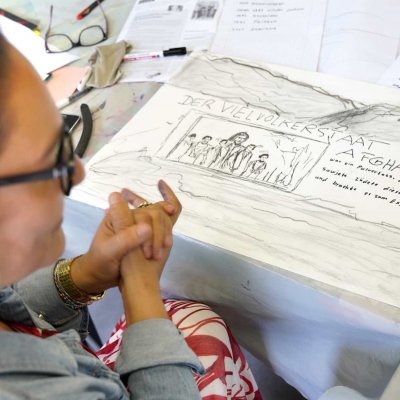 Phyllis Kiehls erster Comic-Workshop für autobiographisches Schreiben & Zeichnen fand im Weltkulturen Museum Frankfurt statt. mehr