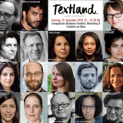 Das erste Textland Literaturfest fand am 15. und 16. September 2018 in der Evangelischen Akademie Frankfurt unter dem Motto Made in Germany statt.