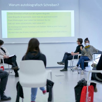 Deutschsprachige Autorinnen und Autoren, die ihre Geschichten bereits literarisch verarbeitet haben, bieten biografische Schreib-Workshops für Jugendliche im Alter von 12 bis 18 Jahren an.