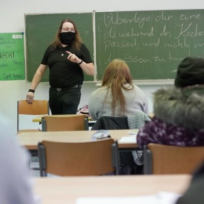 Fotos von einem einem Textland LAB-Workshop mit der Autorin Karosh Taha in der Carl-Schurz-Schule, Frankfurt am Main. mehr